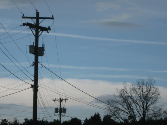 The jet traffic is where we start our contemplations of climate control seized by men. We start with our powers of observation. The photos above are just a sampling of what your eyes tell you about the weather. I mix Chattanooga photos of the past few days with shots published by others of other places subject to the same activity.