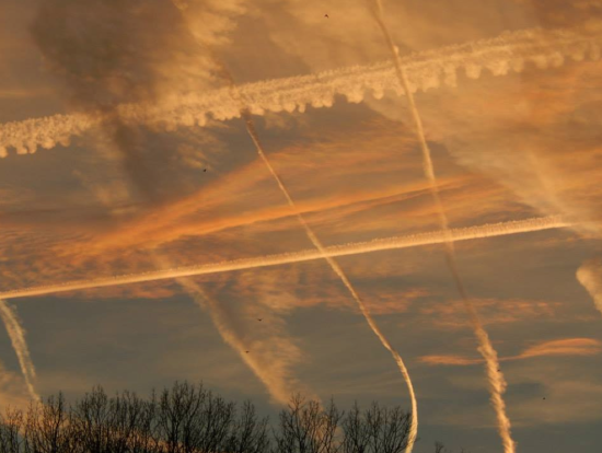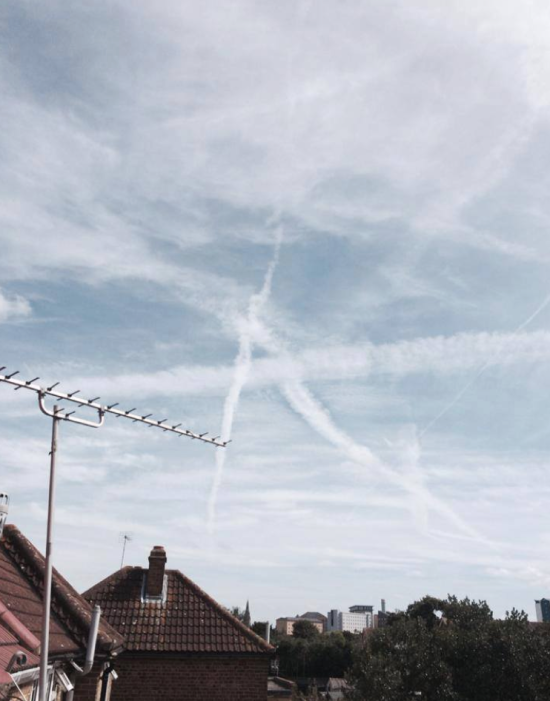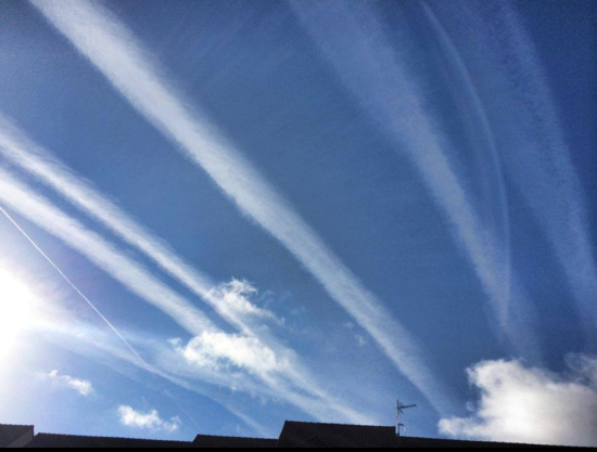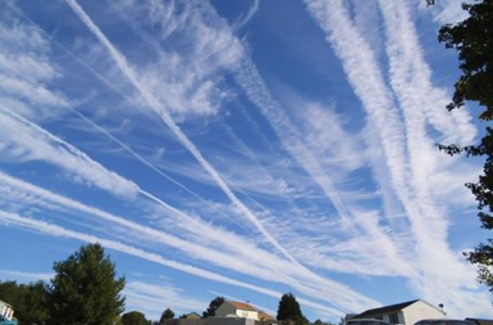 Jet traffic and aluminum dispersal overflights dull the sky over Feltham, London, as often jets do over Chattanooga, Tenn.