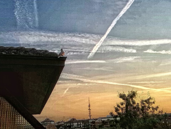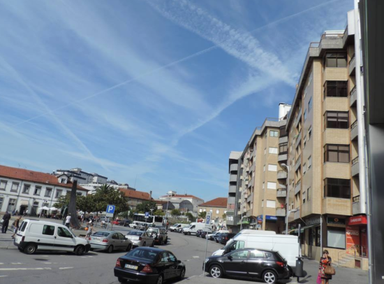 Notice inthis street scene in Portugal how persistent contrails drift into their intended state as stratospheric clouds. (Photo Facebook)