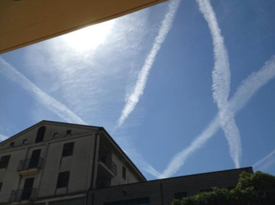 Chemtrailing is a global phenomenon that gives control of weather to important and unelected officials. Here the sun over Porto Potenza Picena, Italy, is weakened in what is ostensibly a plan by nation-states to cool the planet.