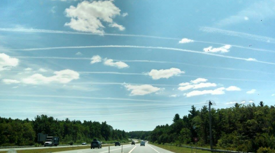 Jets muck up the sky to deflect sun Sept. 13, 2014, over my residence in Soddy-Daisy, Tenn. Doing yardwork a few miles from my house with a son, I am expected to inhale particulates without complaint.