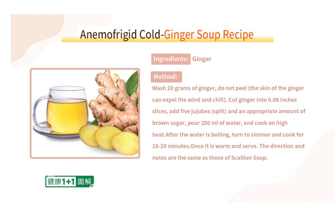 Shu said ginger soup (ginger tea) is good for relieving Anemofrigid (wind-cold) cold symptoms, and it is best to drink it in the morning.